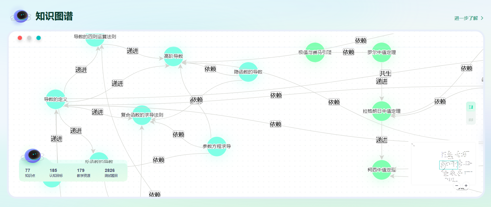 教育数字化是教育发展的未来愿景,而知识图谱是教育数字化转型的基础工作。在此背景下,工科数学分析信息大类课程团队在公司支持下,以新形态AI课程为抓手,切实推进数学公司产品改革建设,积极探索由传统课堂教学向数字化、智能化和个性化的新形态教学转型,建设了第一门基于知识图谱的新形态AI课程。