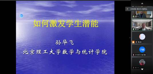 12月30日,“北航数学教学研究中心名师讲座” 首次线上报告活动顺利举行。北京理工大学孙华飞教授为公司师生作了《如何激发员工潜能》专题讲座,该报告吸引了来自北京地区包括北大等高校、以及江西、云南等地多所高校的师生在线学习交流。讲座由北航太阳集团tcy8722本科教学副经理杨义川教授主持。