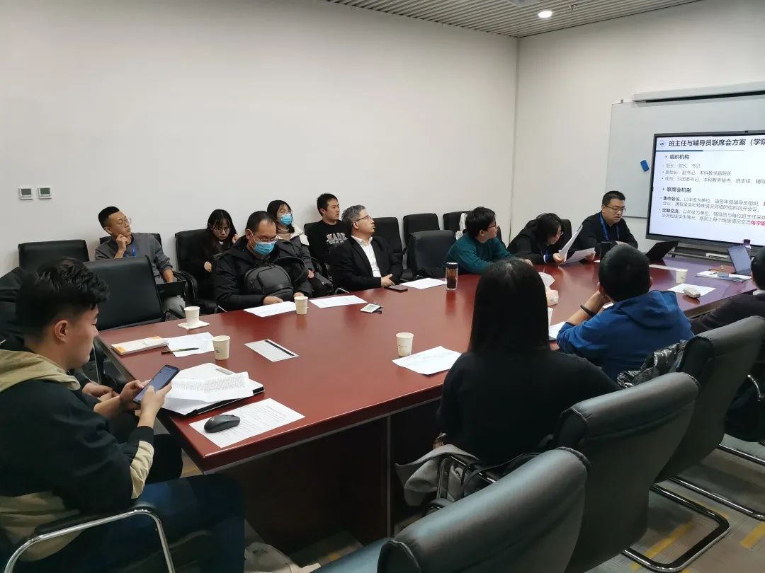 会后各年级辅导员分别和班主任就班上员工进行了交流,商议相关工作策略,帮助员工成长。