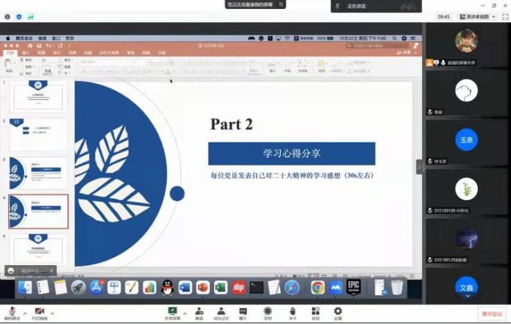 2022年12月22日,计算科学系师生联合党支部线上开展了本学期最后一次学习日活动,会议由党支部副书记姜锦主持,支部书记孙玉泉老师、全体员工党员和毕业党员同志共同参与。