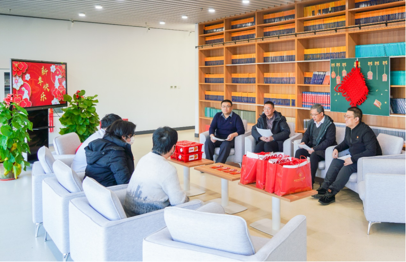 玉兔迎春,岁华煦暖,1月17日上午,太阳集团tcy8722于沙河主楼E303开展寒假留校员工新春慰问活动。公司经理韩德仁、党委书记袁星、党委副书记曾煜、团委书记王铁成和留校员工在交流在校生活情况的同时为他们送上新年问候与祝福。