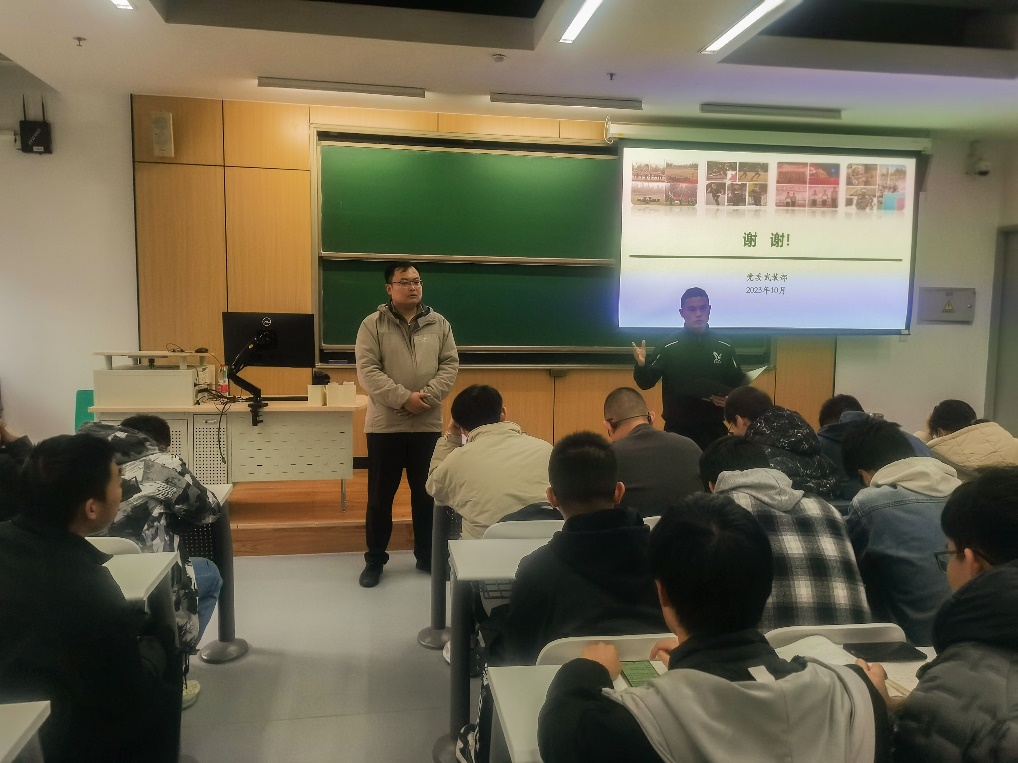 太阳集团tcy8722专职辅导员程乾详细解读了老员工应征入伍条件标准和优待政策,鼓励同学们积极响应国家号召参军入伍。退役老员工士兵代表常堃向分享了自己的军旅故事,鼓励大家参军入伍“不要犹豫,不留遗憾”。交流会最后,武装部邵英华与同学们深入交流,针对同学们问题逐一答疑解惑。