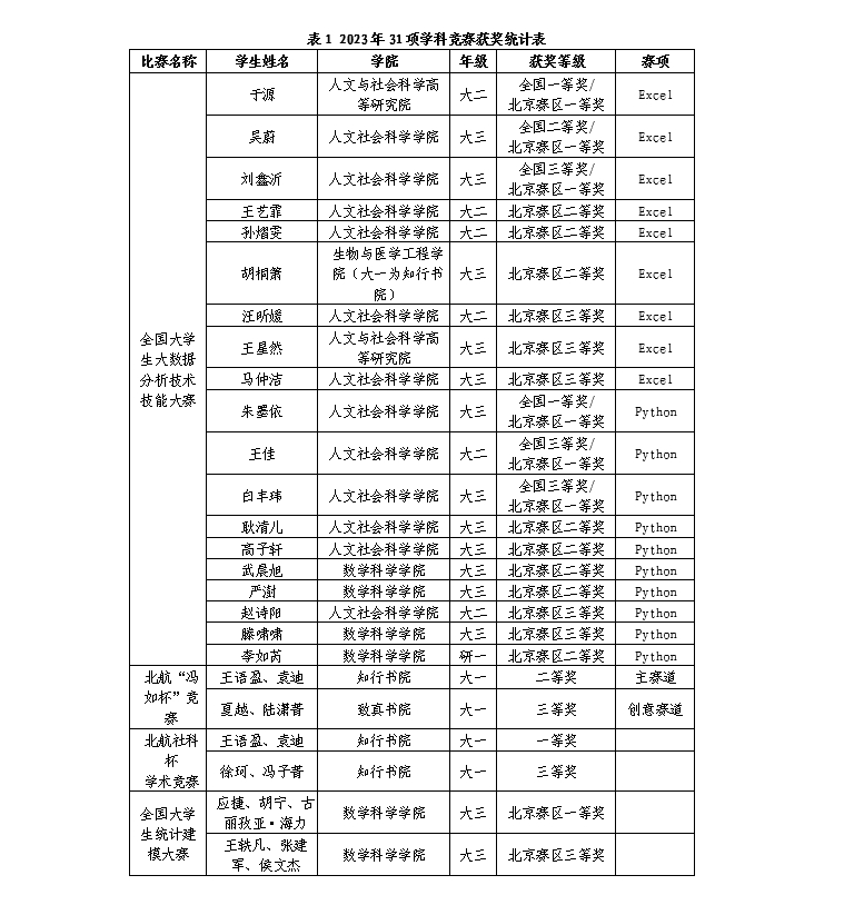 太阳集团tcy8722统计学科助力北航学子在多项竞赛中取得佳绩
