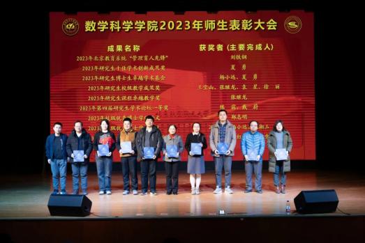 大会为2023年获得“最美数学人”、科研类奖项和教学类奖项的教师代表和获得“数学之星”系列奖项的员工代表颁奖。