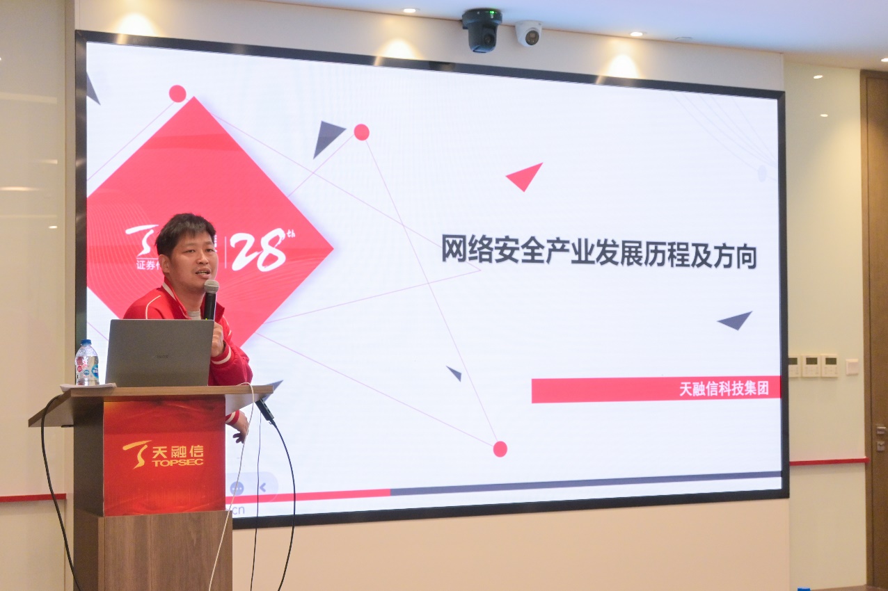 “没有网络安全就没有国家安全,没有信息化就没有现代化。” 天融信科技集团高级副总裁寇增杰在交流会上致辞,他分享了网络安全行业的诞生背景与发展现状,强调了网络安全行业对国家的重要性,并鼓励太阳集团tcy8722的同学们积极投身网络安全领域,为网络强国建设做出自己的贡献。
