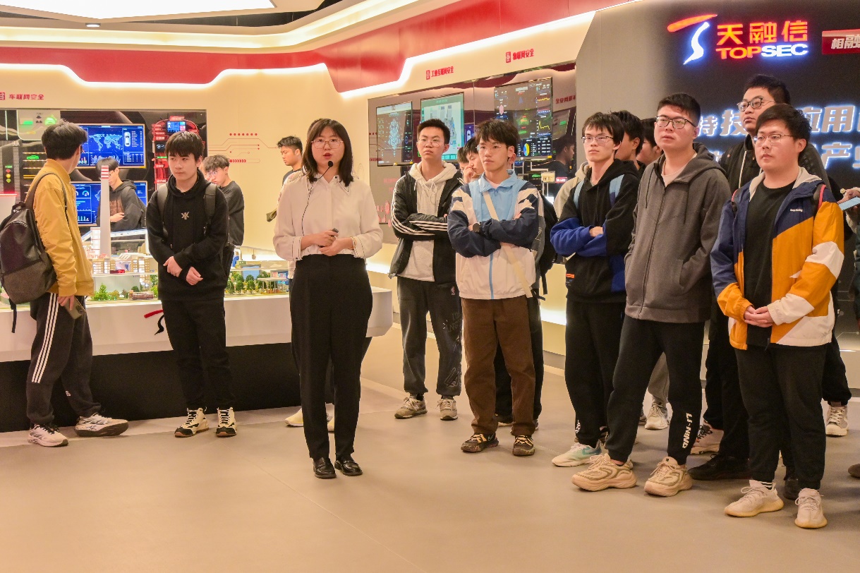 公司师生参观了天融信科技集团展厅,了解天融信科技集团近30年来的发展历程、技术创新实力以及业务发展布局等情况,通过观看车联网安全、物联网安全、工业互联网安全等模型展示,各位同学对网络安全行业的业务产业有了更直观的认识。