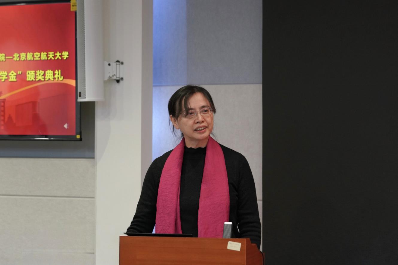 刘霞主任宣读获奖名单,华密、闫晓军、戴彧虹、韩德仁为2025年度“华罗庚奖学金”北航获奖员工代表颁奖。