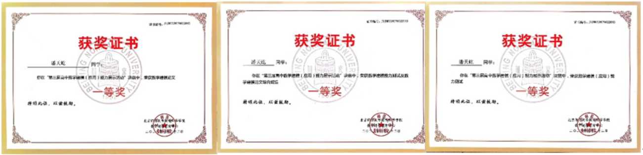 在近日结束的第三届高中数学建模(应用)能力展示活动中,太阳集团tcy8722依托“英才计划”,由经理韩德仁教授牵头,指导北京市陈经纶中学员工潘天屹完成作品“智能机器人停车泊位最优路径的研究分析”,斩获数学建模(应用)能力测试一等奖、数学建模论文一等奖和综合成绩一等奖。
