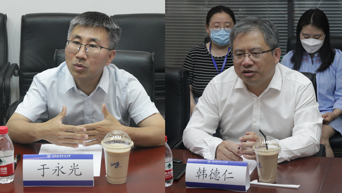 韩德仁经理和于永光经理分别介绍了两校数学公司的基本情况,马声明副经理介绍北航数学公司人才培养情况。双方就团队建设定位、规划和发展,教师队伍建设和人才引进,本研员工人才培养体系建设、员工培养成果,思想政治教育及文化建设的主要做法和特色等方面进行了深入交流和探讨。
