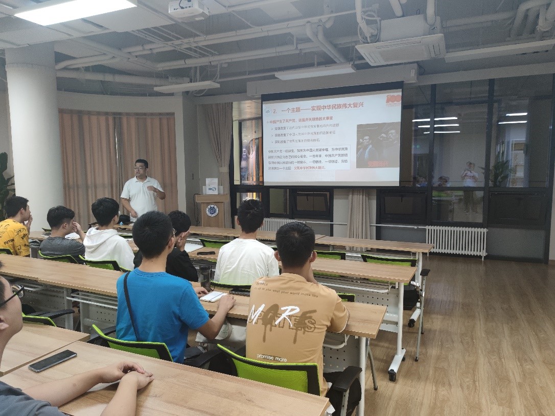 主题学习党课共分为两个部分:首先同学们认真观看了习近平总书记在庆祝中国共产党成立100周年大会上的重要讲话。随后由公司党委副书记曾煜做有关讲话内容的学习辅导报告,为同学们全面梳理、概括讲话内容,结合自身实例,方便同学们理解与感受讲话的精神内核。学习报告的第一部分围绕“一个主题”、“四个伟大成就”、“四个庄严宣告”总结了百年来中国共产党带领中国人民取得的辉煌成就。之后,在主讲人的带领下,同学们共同学习了“伟大建党精神”的精神内核,以及“九个必须”的根本要求。最后,曾煜老师结合北航师生参与“七一”庆祝大会和参演文艺演出的相关事迹以及自身作为志愿者的实例,勉励21级强基数学班的新生们,牢记总书记对青年人的嘱托,以实现中华民族伟大复兴为己任,不负党和人民的殷切希望。
