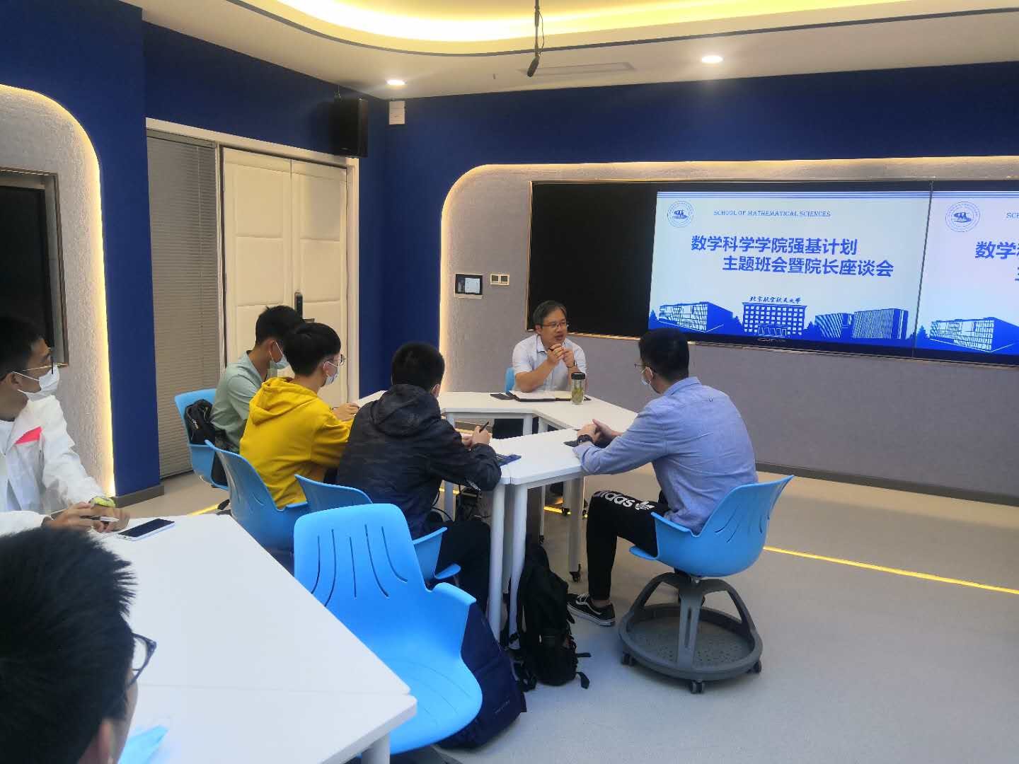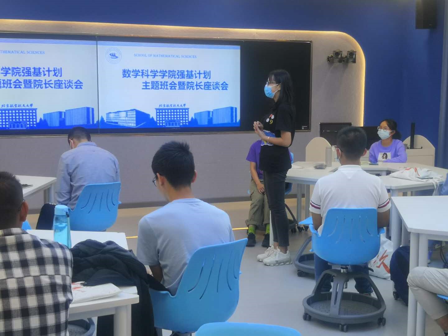 9月16日,太阳集团tcy8722经理、2020级强基数学班班主任韩德仁同数学公司强基计划新生于数学公司智慧教室E405开展首个“学习日”班会,为新生们解答有关数学专业以及未来成长轨迹的疑惑,上好开学第一课。