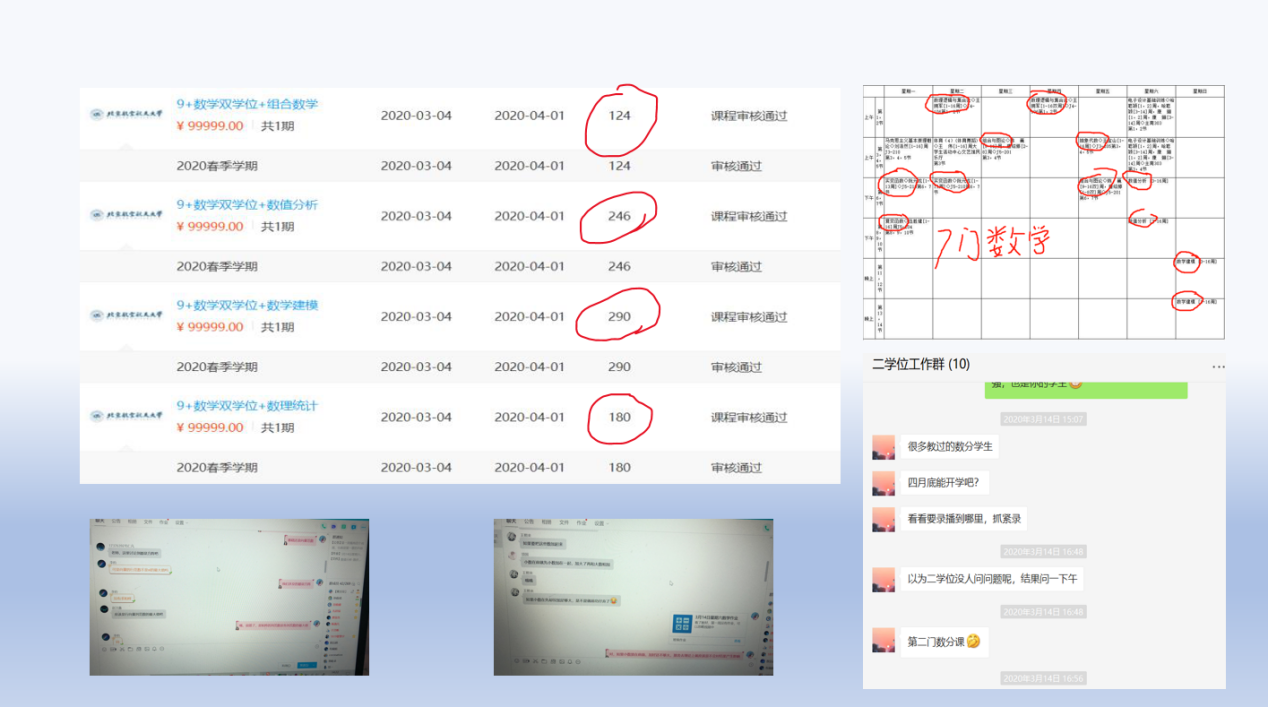 系主任、华罗庚班责任教授、专业课课程组召集人、教学实验平台工作组组长、公共课课程组负责人、二学位责任教授发言。系主任对各系线上教学总体运行情况进行介绍,提出对教学工作的建议和本年度工作规划。华罗庚班责任教授介绍华班线上教学情况。专业课课程组召集人对于各专业课课程组提出对教学规划的思考和建议。公共课课程组负责人分别介绍各课程组组内前期线上授课准备过程、现阶段教学运行情况,以及下一阶段的工作规划。二学位责任教授介绍数学二学位工作前期工作情况及目前的开课情况。