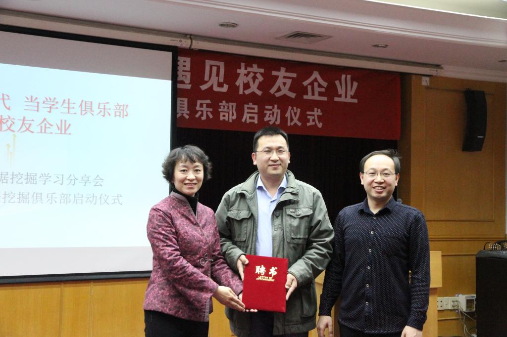 数学公司大二员工邢家豪,作为数据挖掘俱乐部部长,向大家介绍了正在如火如荼筹备中的数据挖掘俱乐部的近况。邢家豪同学慷慨激昂的陈述,使大家对俱乐部的未来充满憧憬。随后,党委书记李红捷向俱乐部指导老师刘超授予聘书,刘超老师首先就公司领导对自己信任表示感谢,并表示很乐意与同学们一起学习、探索数据挖掘,一起面对数据挖掘中遇到的挑战。