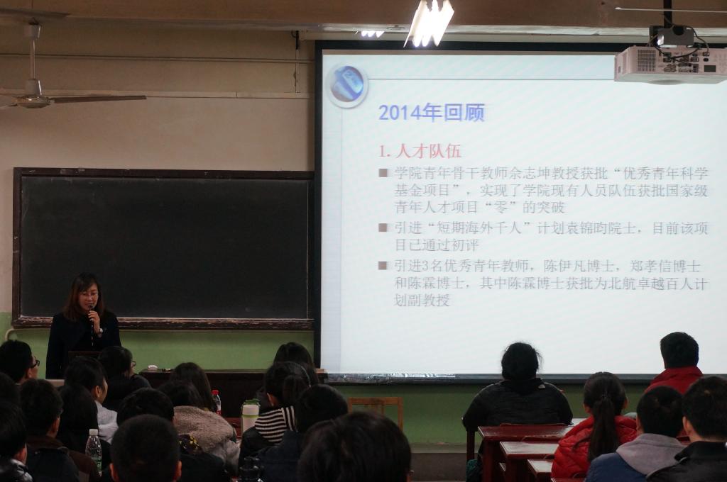 3月11日下午,公司2015年寒假员工党员集中学习大会在公司路校区主南403教室举行。本次大会在全公司党员集中学习之后召开,包括全院员工党员的集中学习和各党支部的主题讨论两部分。集中学习大会的与会老师有公司分党委书记李红捷老师,副书记王菲老师,分团委书记丁丁老师,全体本科生、研究生辅导员,以及大三、大四本科生党员和全体研究生党员。会议由研究生辅导员李垠序主持。