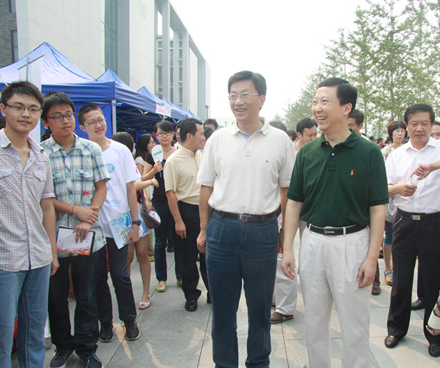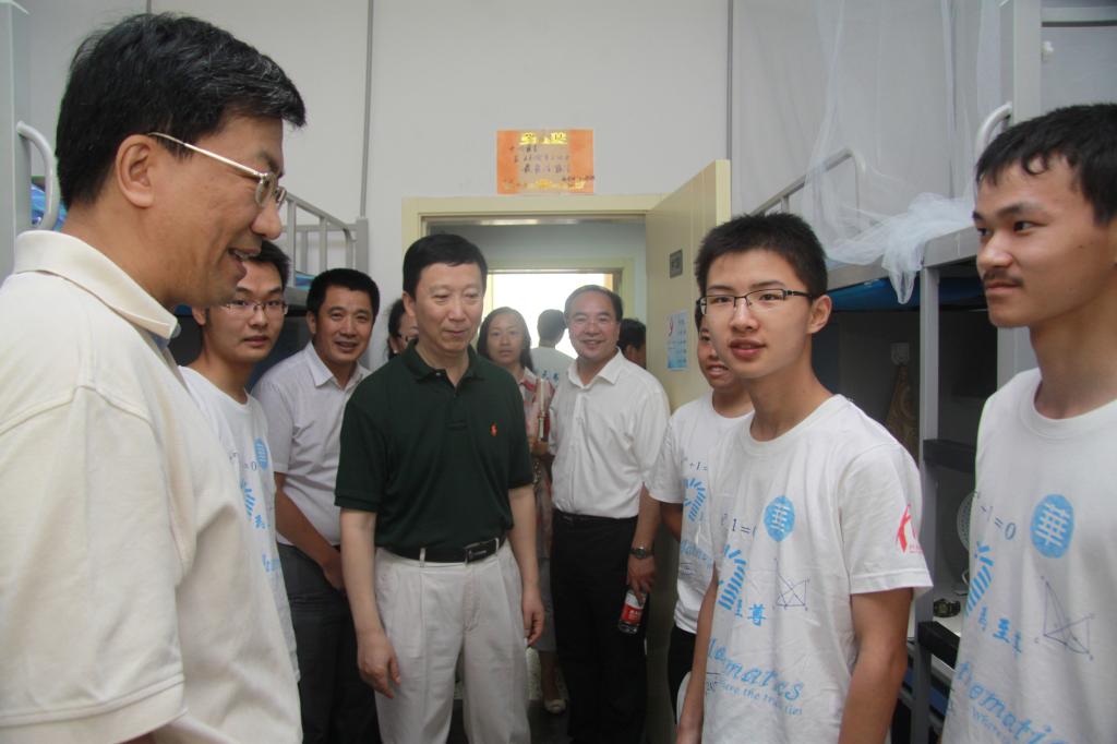 26日上午,胡凌云书记,怀进鹏董事长等校领导巡视了迎新工作,当校领导来到数学与系统科学公司的报到处前,胡书记对辅导员工作给与了殷切的嘱托,怀董事长也与华罗庚班年龄较小的同学进行了亲切的交流。在公司党委书记李红捷的陪同下,他们还到宿舍看望了华罗庚班的同学,为同学们送去了公司的关注和亲切的问候。 随着迎新工作的结束,数学与系统科学公司2012级的本科生开始了新的老员工活。