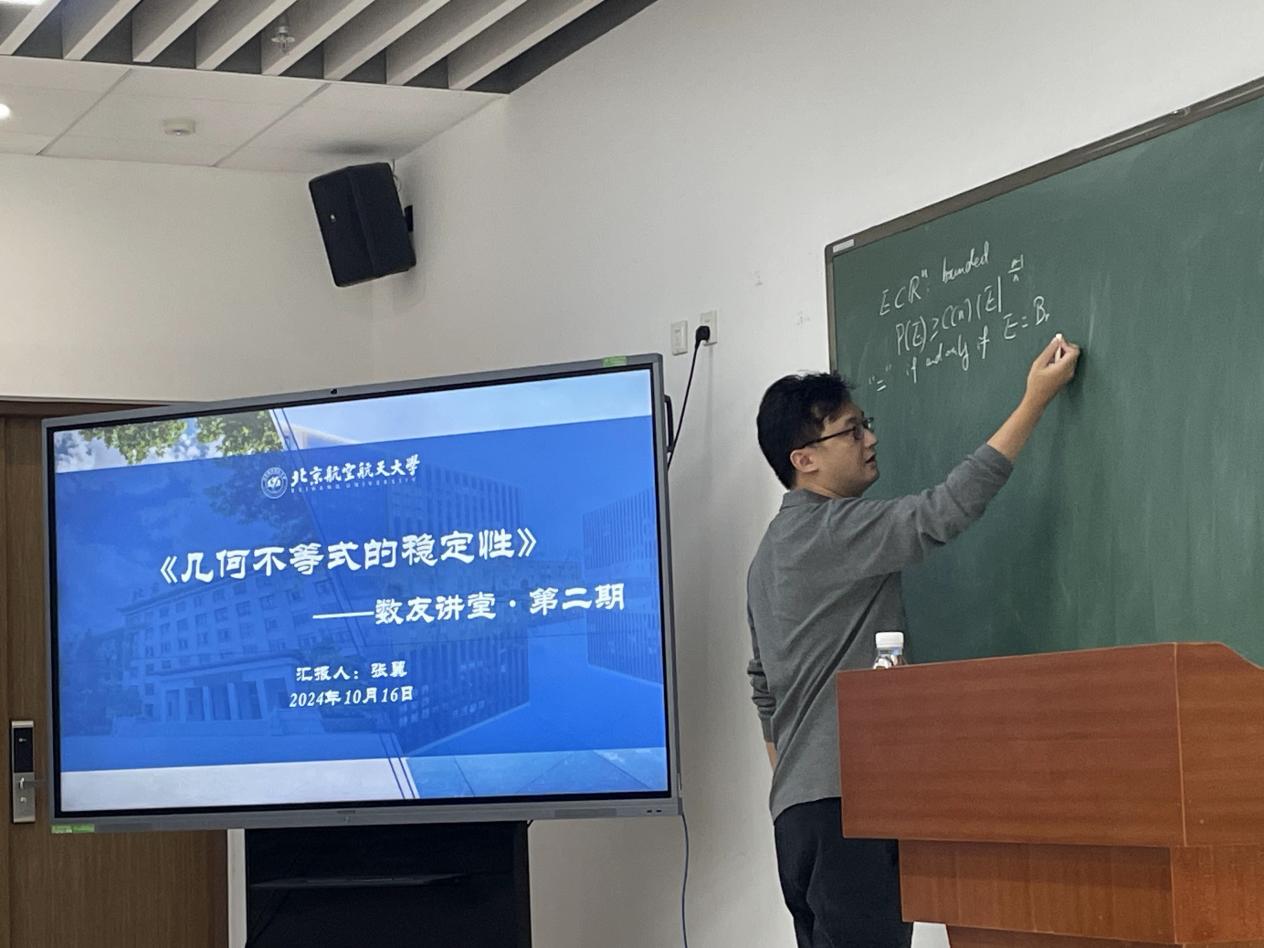 10月16日,2013届员工、中国科公司数学与系统科学研究院副研究员张翼返校主讲《几何不等式的稳定性》数友讲堂。