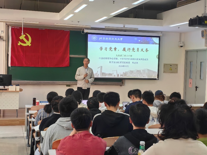 10月23日下午,2024年秋季学期公司党校第一次党课暨开班仪式于沙河校区j5-201举行。本次党课由北航“三老”协会常务副会长、航空发动机研究院陈志英教授主讲。公司党委副书记魏茜出席,近150名员工党员和入党积极分子聆听学习。