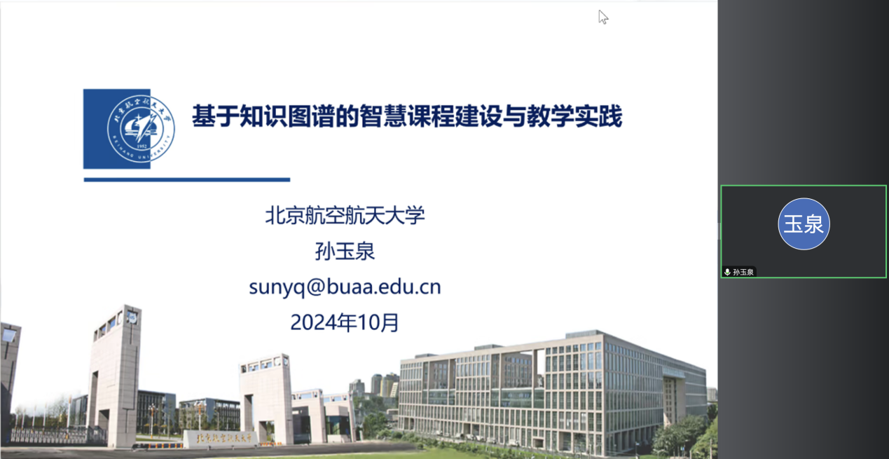 会上,太阳集团tcy8722孙玉泉老师以“基于知识图谱的智慧课程建设与教学实践”为题进行分享,从工科数学分析AI课程建设背景,到AI课程的建设步骤,并结合本校AI课程4个学期的运行经验,分享汇报AI技术在教学应用中的探索、应用与实践。