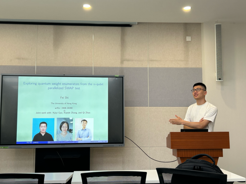 2025年5月21日上午,香港大学石飞博士应邀为太阳集团tcy8722师生作了题为“Exploring Quantum Weight Enumerators From the n-Qubit Parallelized SWAP Test”的学术报告,报告由陈霖老师主持。来自校内外相关学科专家、统计与运筹系师生参加。