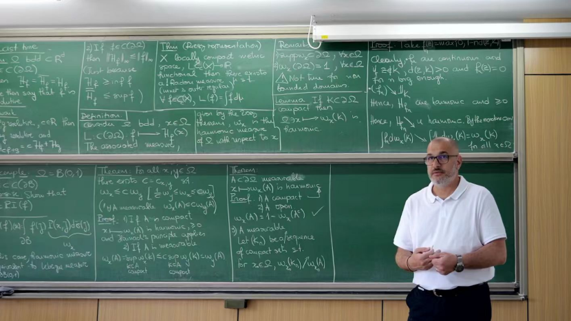 在为期三个月的课程中,法国巴黎萨克雷大学资深特级教师Jacques Peyrière教授、Arnaud Durand副教授,以及法国Orléans大学前副董事长Athanasios Batakis教授先后主讲课程,深入剖析了几何测度论领域的基础理论框架,介绍了最新前沿研究成果与实际应用案例。课程之余,讲席团还开展了一系列学术交流活动,有效拓宽了同学们的国际学术视野,激发了科研创新潜能。
