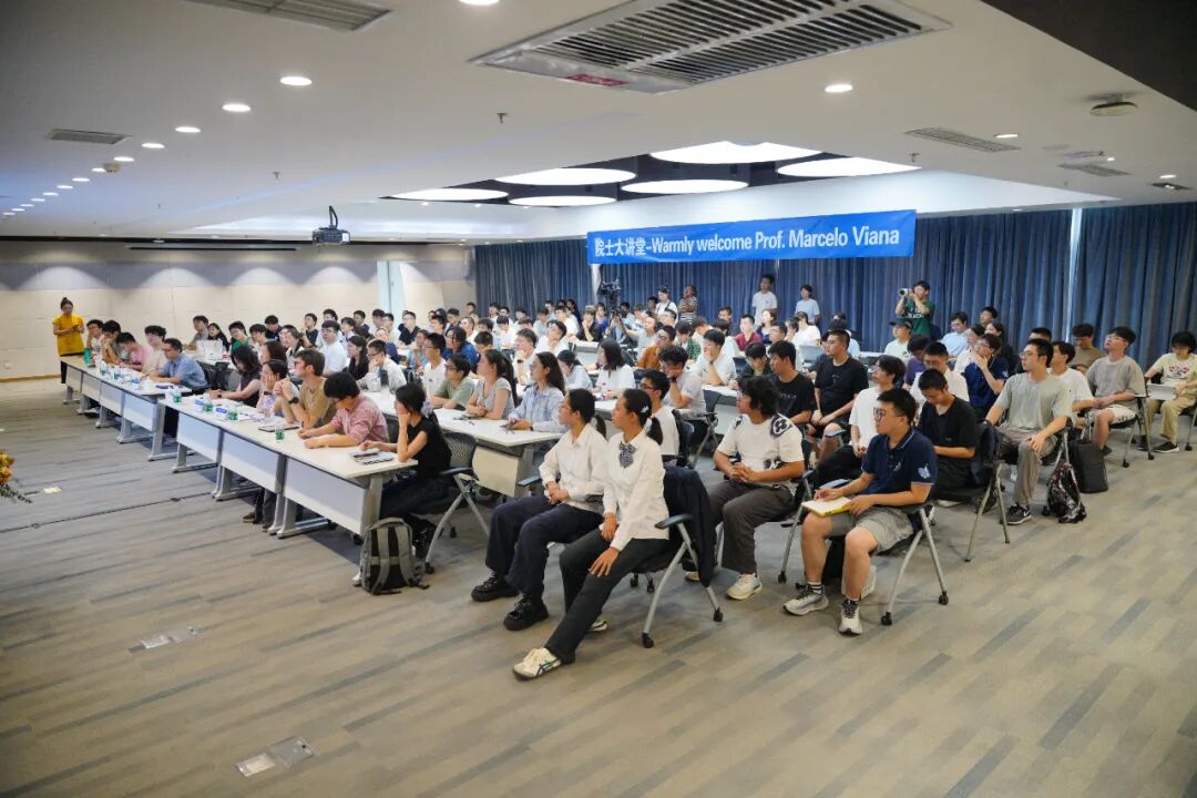 讲座现场气氛热烈,师生们积极互动。讲座开始前,全体师生与Viana院士合影留念,留下了宝贵的记忆。讲座结束后,许多同学踊跃提问,与Viana院士深入探讨数学研究中的问题与想法。Viana院士耐心解答,并寄语同学们保持好奇心与独立思考,勇敢面对挑战,不畏失败,敢于提出新问题、探索新方向,在研究中保留探索的野心,成就自己的学术梦想。