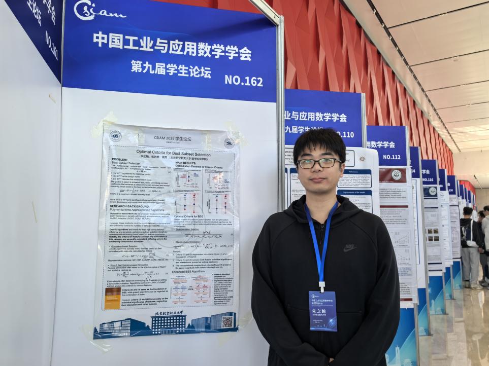 北京航空天大学23级博士研究生朱之翰进行了题为“Optimal Criteria for Best Subset Selection”的海报展示。