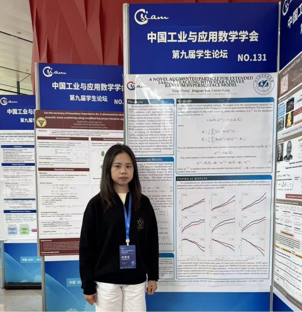25级硕士研究生游景瑶进行了题为“A Novel Augmented Particle Filter for Extended Target Tracking with Star-convex Random Hypersurface Model”的海报展示。